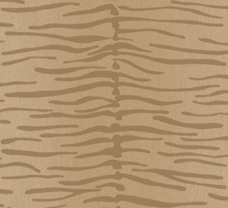 Papel pintado, en color café con leche y marrón, imitando piel animal. Fácil de limpiar gracias a su superficie vinílica.